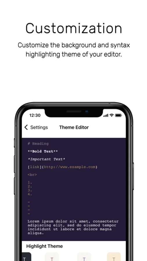 Customize your editor with new background colors and syntax themes to make your experience perfectly tailored to you.