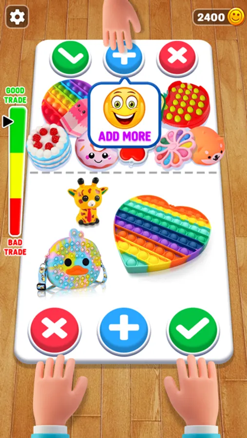 If you both agree on the deal push the tick button to complete the trade, or demand more toys from your opponents.