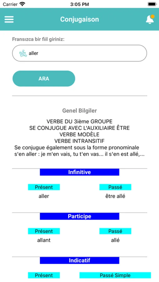 - Fransızca fiil çekimleri zordur. Fransızca öğrenen birisini için conjugaison (fiil çekimleri) olmazsa olmazdır. Bir fiilin her zamandaki çekimlerini bulacaksınız.