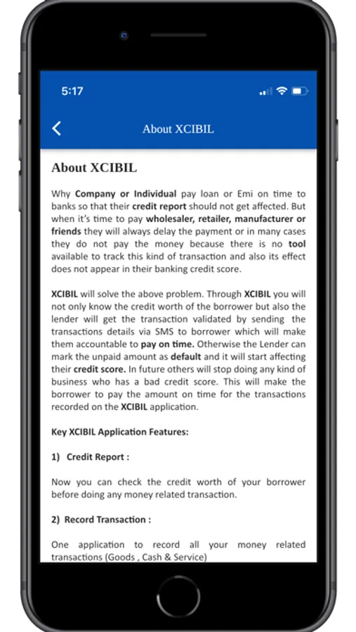 XCIBIL will solve the above problem. Through XCIBIL you will not only know the credit worth of the borrower but also the lender will get the transaction validated by sending the transactions details via SMS to borrower which will make them accountable to pay on time. Otherwise the Lender can mark the unpaid amount as default and it will start affecting their credit score. In future others will stop doing any kind of business who has a bad credit score. This will make the borrower to pay the amount on time for the transactions recorded on the XCIBIL application.