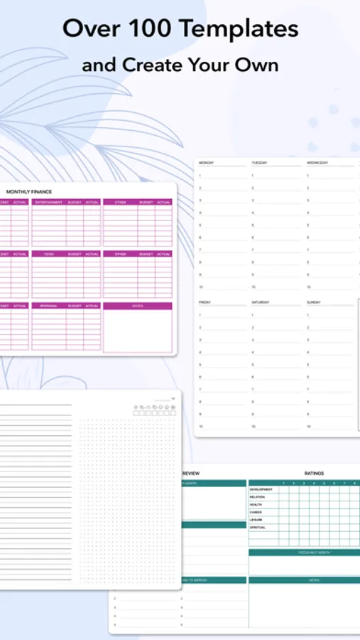 - Over 100 templates with minimalist design and cover every need: daily/weekly/monthly planners, project planners, finance planners, meal/fitness/habit trackers, ATracker, etc