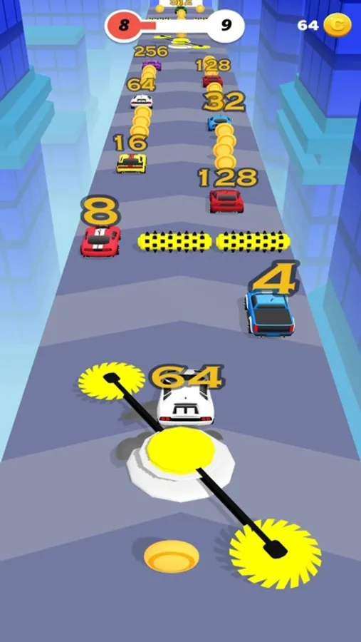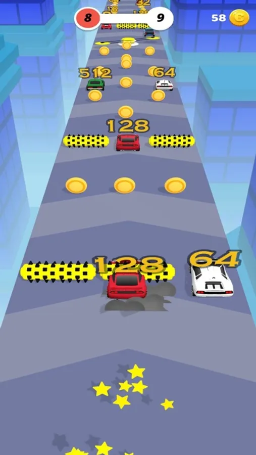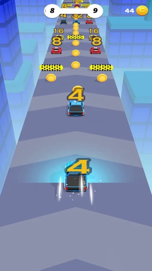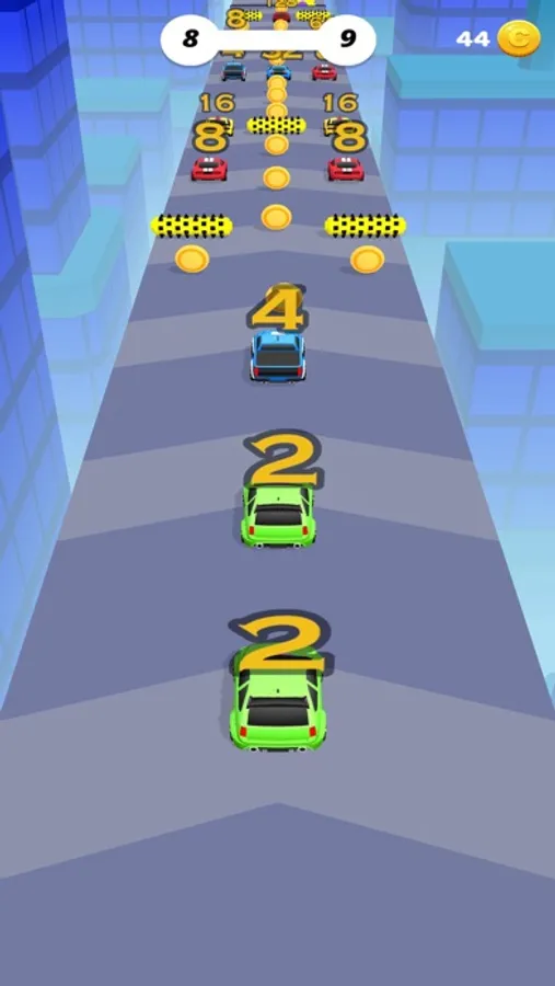 Collect similar cars or numbers and return to the next car. Reach the final with the best car without hitting the obstacles. Get bonuses by breaking walls in the final.