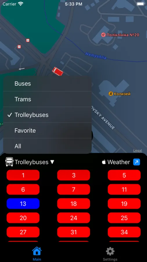 Приложение позволяющие отслеживать транспорт Харькова в реальном времени доступен городской транспорт, пригородный транспорт временно отключен.