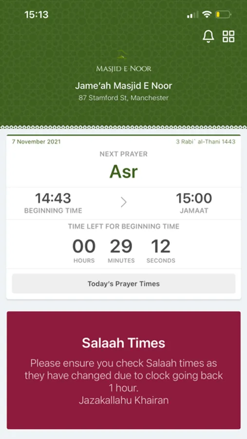 - Iqamah times