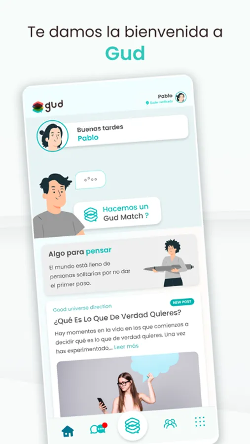 - Descubre una nueva forma de comunicarte y crecer accediendo fácilmente a posts en los que te ofrecemos claves, cuentos, reflexiones y consejos para una mejor comunicación y lo pongas en práctica en tus encuentros Gud match y en tu vida.
