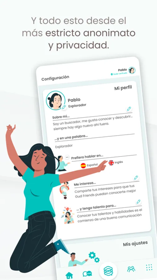 - En GUD puedes adaptar tu perfil a tus necesidades de privacidad y anonimato.