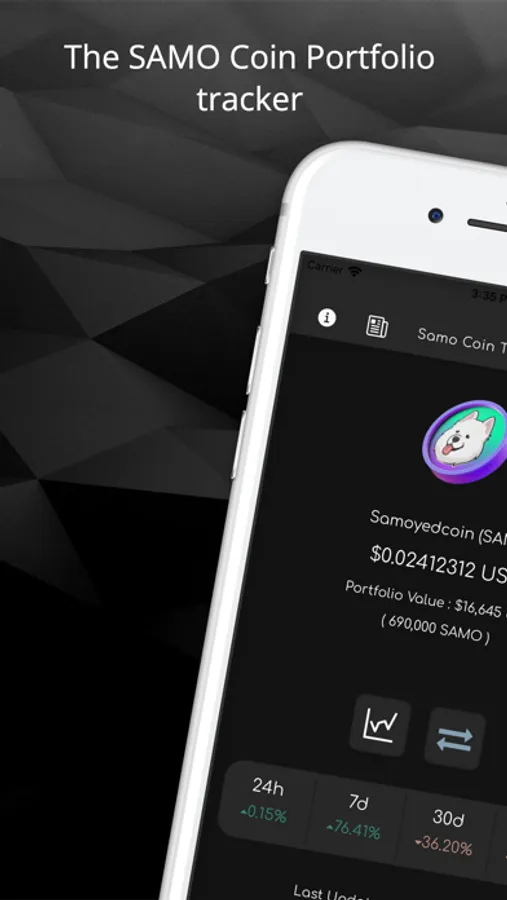 Enter in how much SAMO coin you have to easily see the value of it in USD everytime you open the app. No extras and bloat to clutter up the screen. Simply just SAMO prices and performance numbers