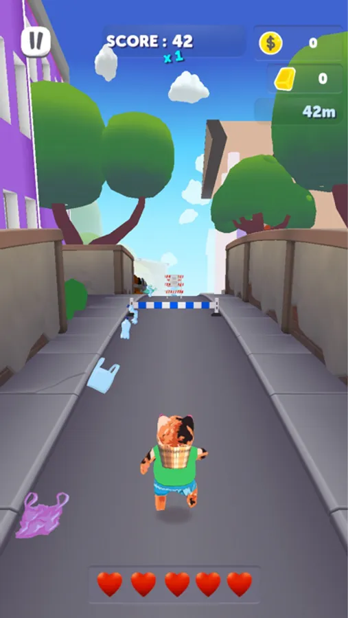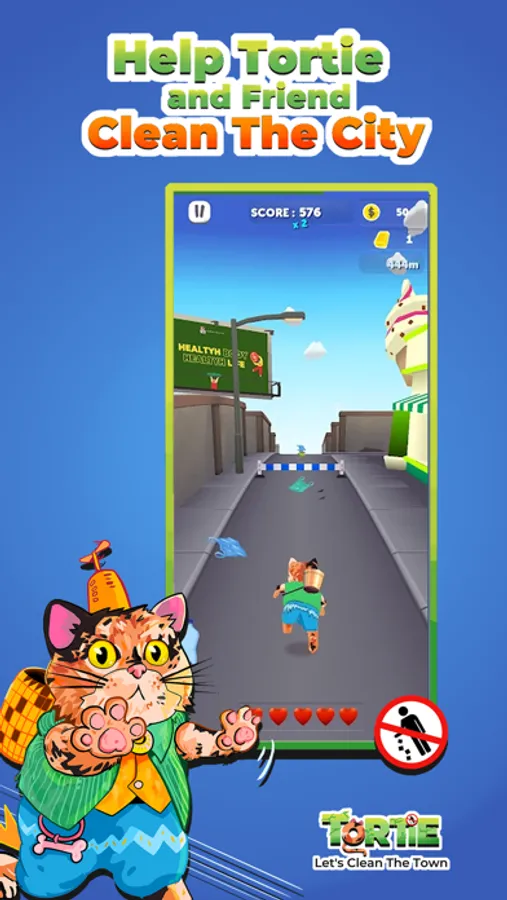 Tortie finds awesome power ups on his journey to clean his hometown. Pick them up and gain temporary power like invincibility and trash vacuum to help you along the way!