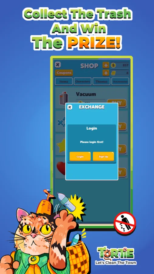 Irresponsible residents is littering around the town where Tortie lives in. Tortie is angered and is on a mission to clean his hometown. Help him pick them up and exchange them with voucher that can be redeemed into e-wallet money!