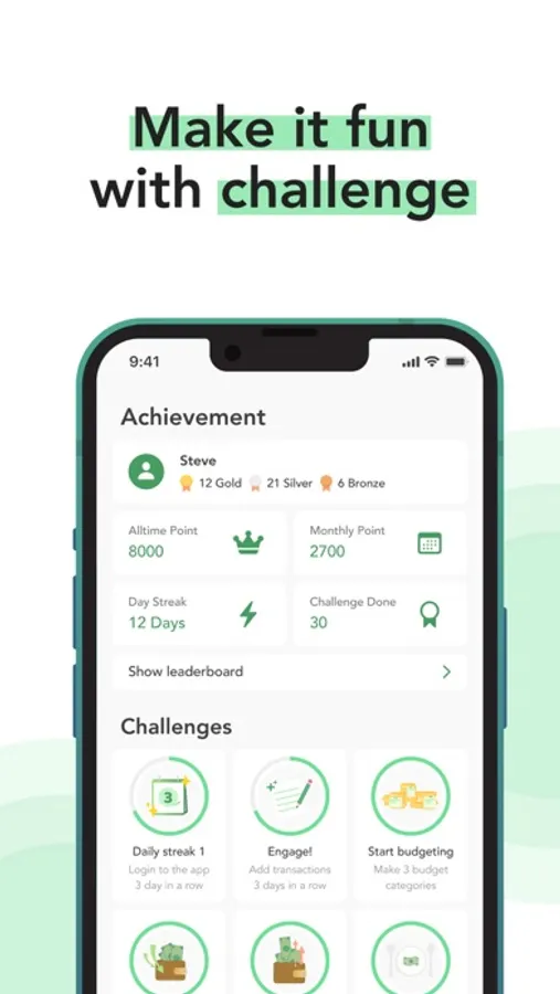 Monecate helps you to manage your cashflows tracking and achieve your financial goals in a fun way by completing the customized challenge.