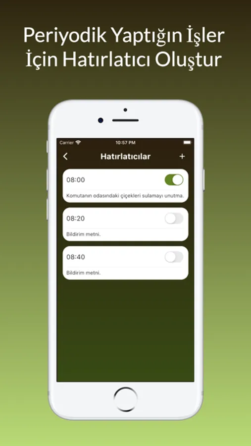 - Komutanınızdan her gün periyodik olarak yapmanız gereken bir emir aldığınız veya askeriyede bir köpeğiniz var her gün onu beslemek istiyorsunuz ama saat geldiğinizde unutuyorsunuz. Hatırlatıcı ekranı sayesinde günlük periyotlarda uygulamanın size bildirim göndermesini sağlayabilirsiniz.