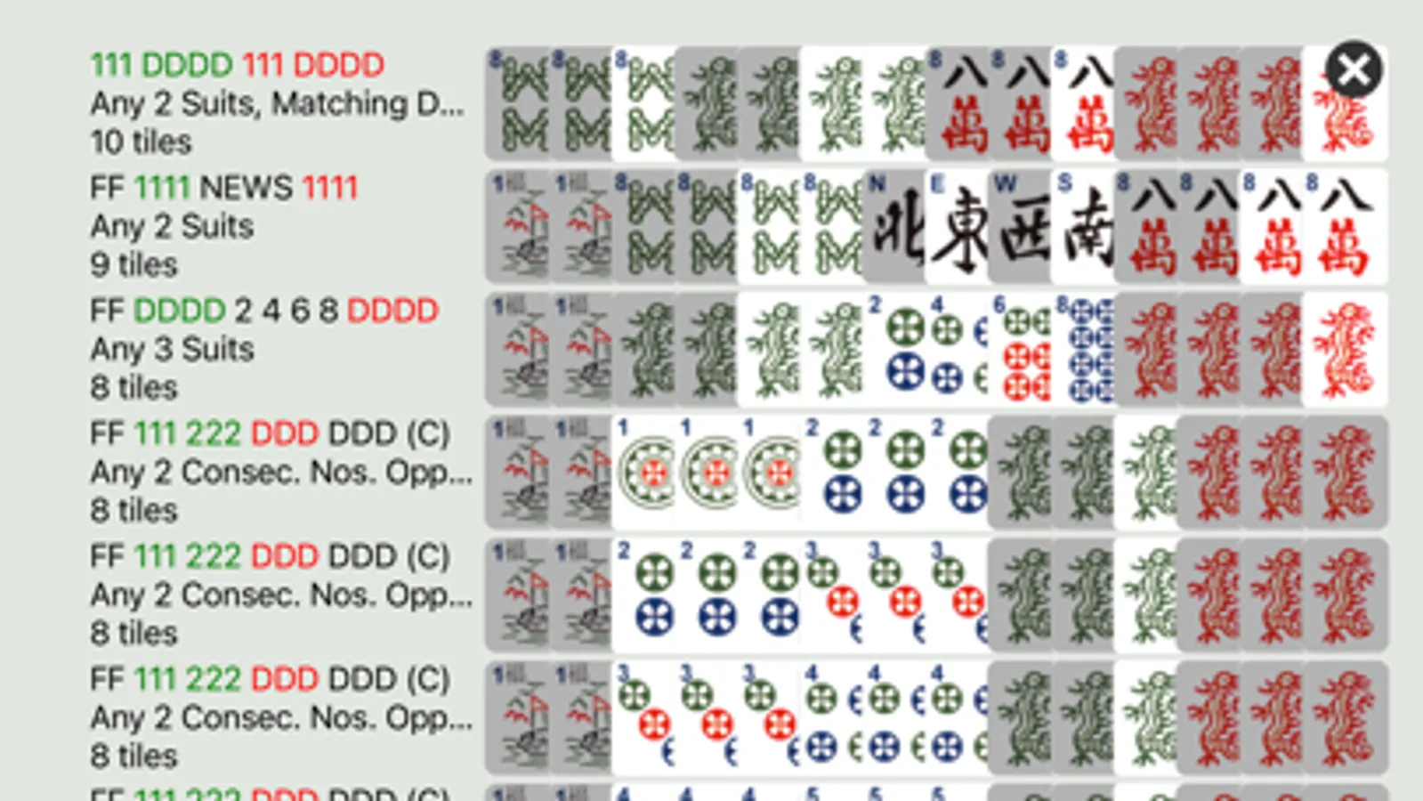 Enter your tiles and lookup matching hands. Improve your game and skills.