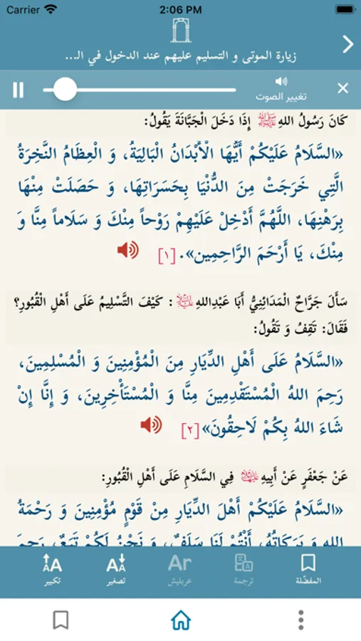 Downloading and playing audio files of Surahs and Duas recited by the beautiful voice of professional reciters,