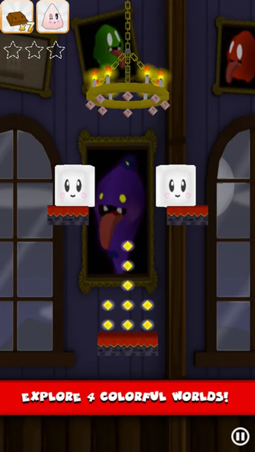 Explore 4 all different themed worlds, each with unique challenges, cute characters and special events. Will you be able to protect your pile of sweets from weird candies and bubbles falling from the sky or hungry ghosts in a haunted mansion?