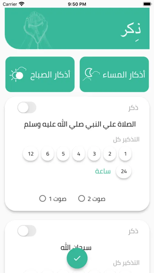 تطبيق للاذكار والصلاة علي النبي يتم تذكيرك بشكل دوري حسب الوقت الذي اخترته