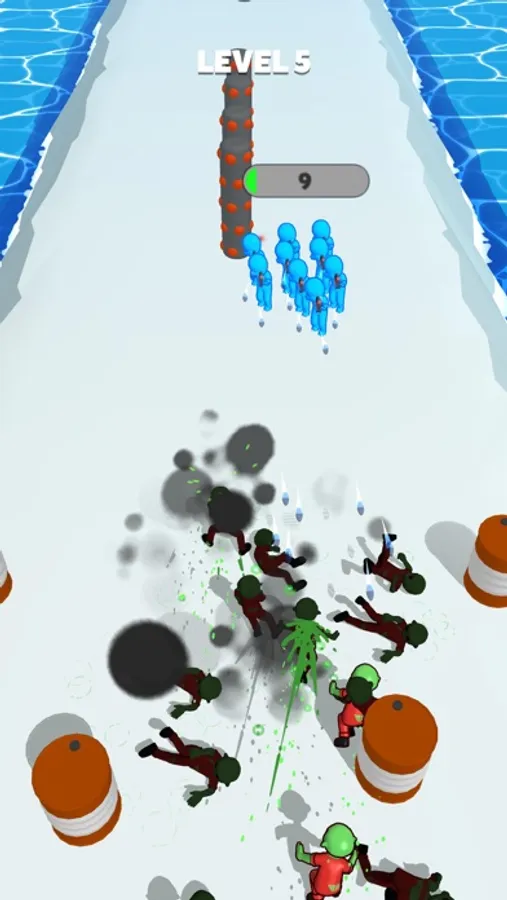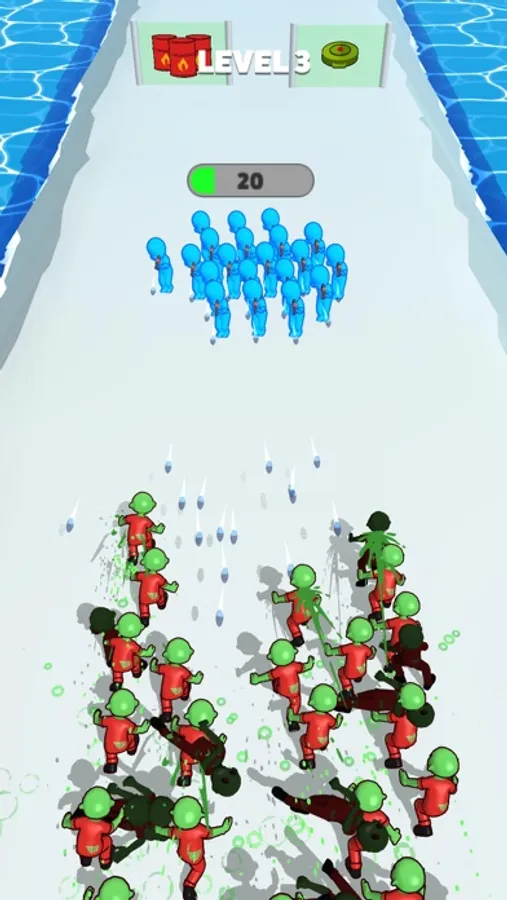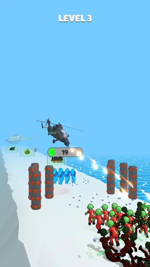 Escape from zombies while collecting soldiers and decide which reinforcements will help you: Tanks, Choppers, sentry guns, mines, and more
