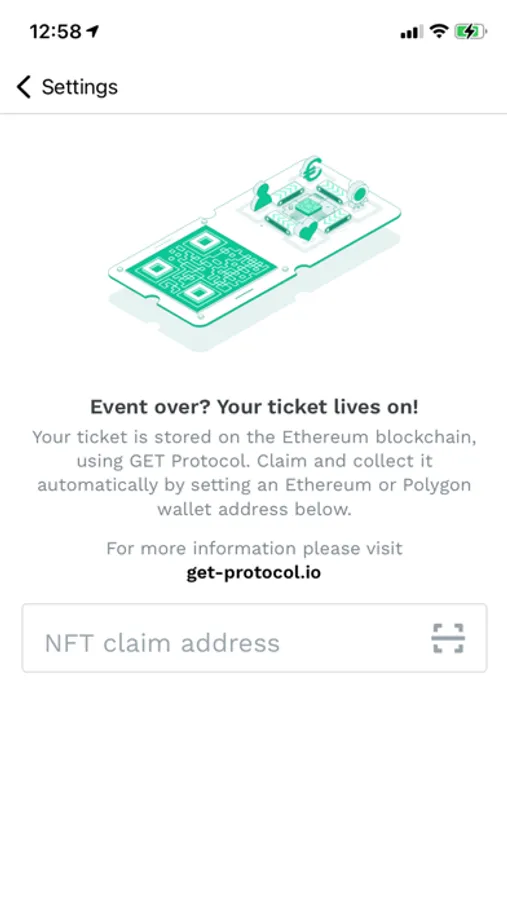 Your tickets are stored on the Ethereum blockchain using Guaranteed Entry Tokens. Claim and collect your NFT stubs by setting an Ethereum or Polygon wallet address.
