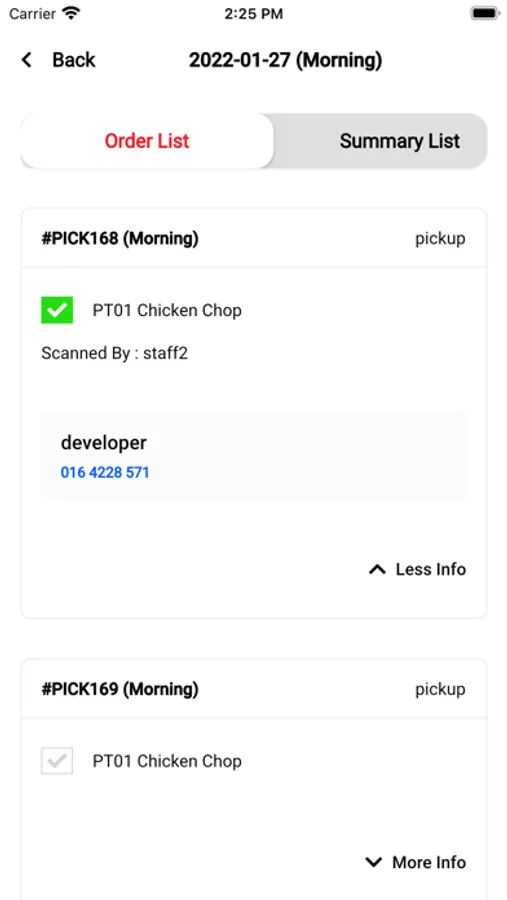 This is an app for hub staff where they can view the upcoming order list and and scan the label with QR code scanner implemented in the app to view the product's details.