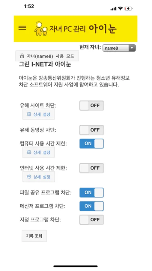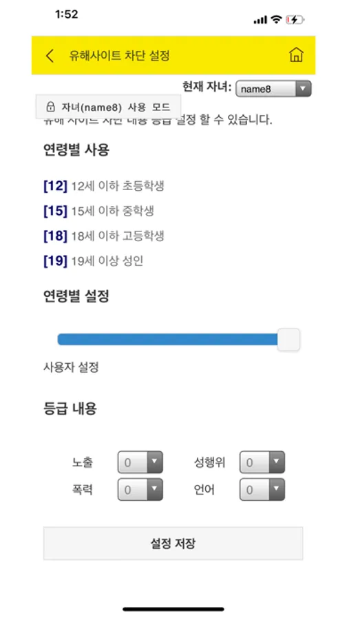자녀 연령에 맞추어 유해 사이트 차단 기능