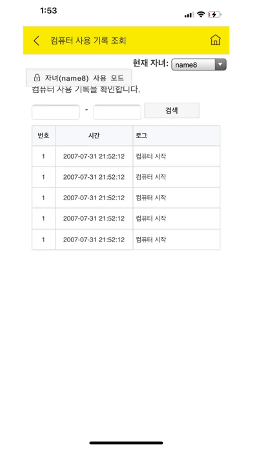 8. 컴퓨터 사용 기록 조회(날짜별로도 가능)