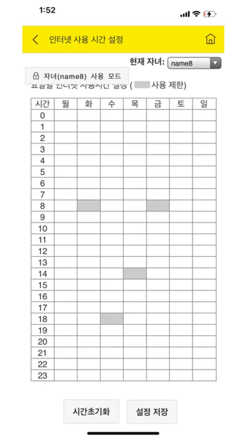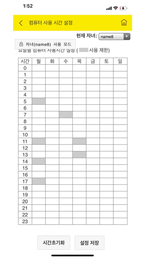 4. 인터넷 사용 시간 제한 설정(요일별)