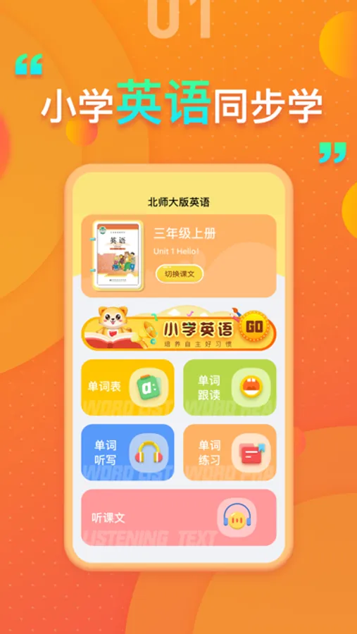 北师大版小学英语是一款专注5-12岁小学生课后学习工具。