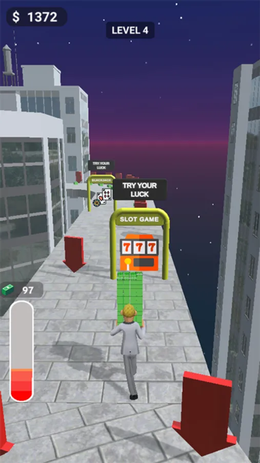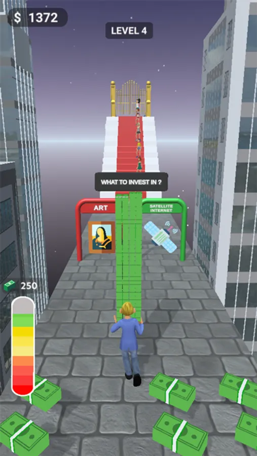 Walk your way to the finish line by collecting money and avoiding obstacles!