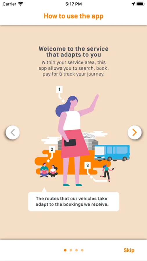 FlexiRide has no fixed route and only operates when booked. Passengers can book a trip from their nearest physical or virtual bus stop and travel to or from the designated FlexiRide bus hubs in the same service area.