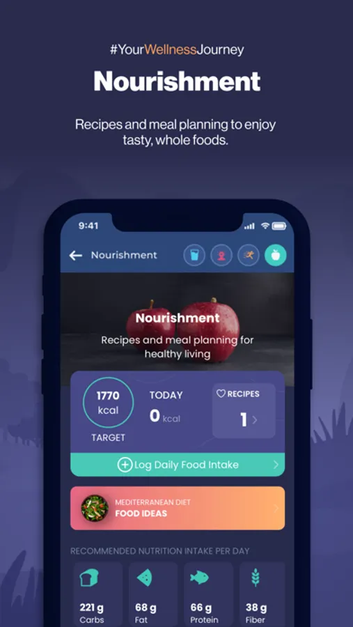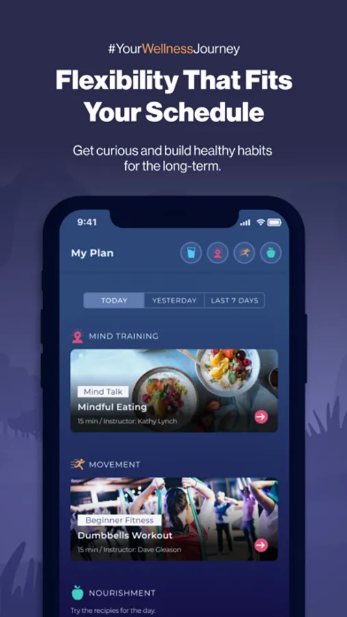 • 5 minute MindTalk lessons (featuring experts in nutrition, psychology and mindfulness) that will help transform the way you view food, fitness and stress; and