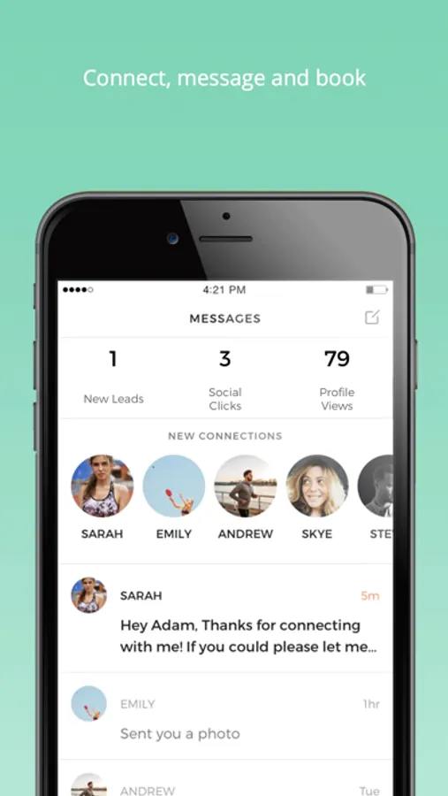 • Promote your services, get more new clients and engage with your existing clients with daily reminders and in-App message notifications.