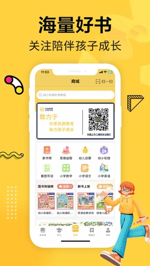 书籍配套免费音视频和课程,帮助家长教孩子学习。专业团队针对幼、小学段孩子开发优质学习内容,不断更新扩充增值资源,一次购买,永久使用。