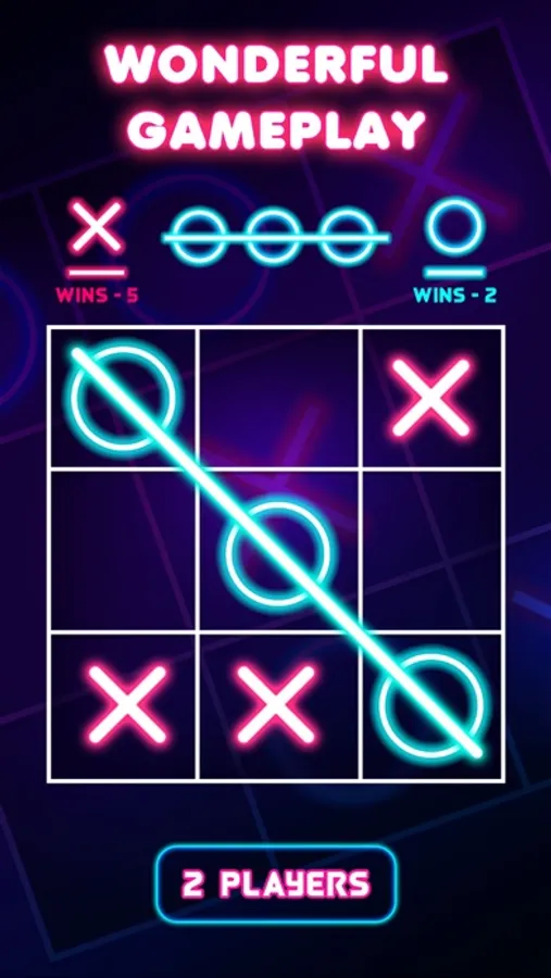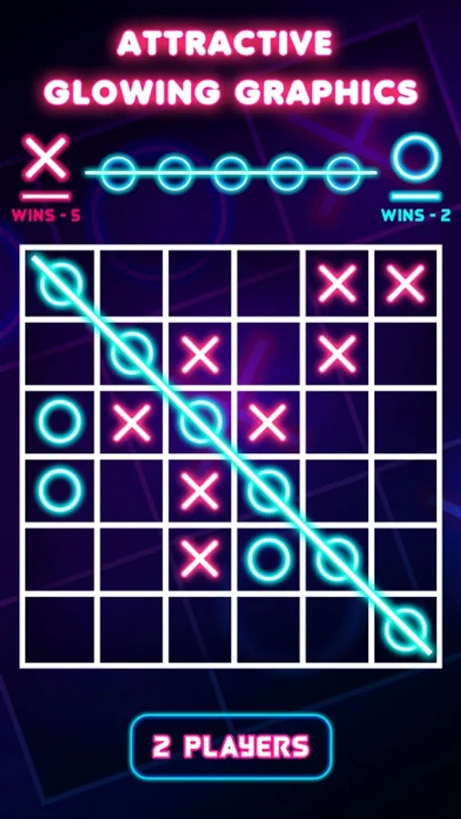 New tic tac toe o x game includes Glowing graphics. This new tic tac toe 2 player offline game supports glow themes. Noughts and crosses game have beautiful graphics and it's free game.