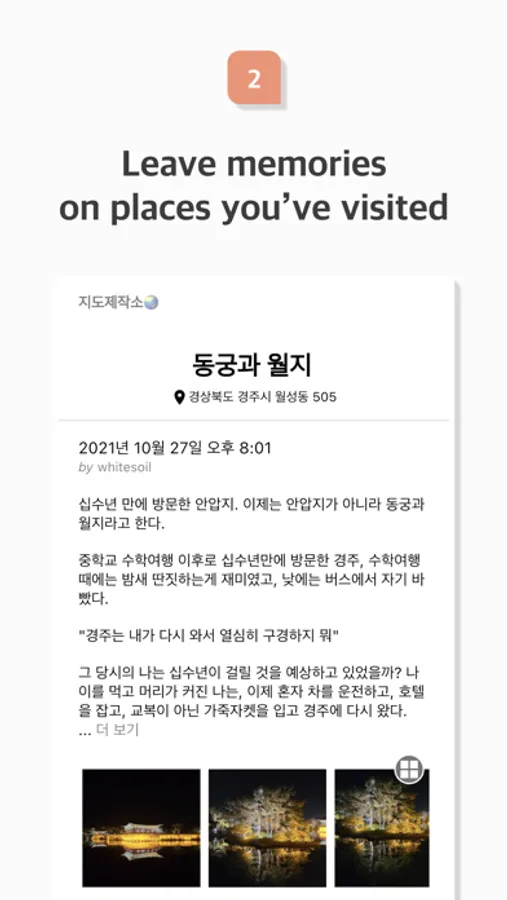 Do you remember the places and events like last year's birthday, this year's Christmas celebration, or backpacking trip? Treasure those precious memories on the map by writing memos, recording time, and uploading photos & videos. A space where you can be you.