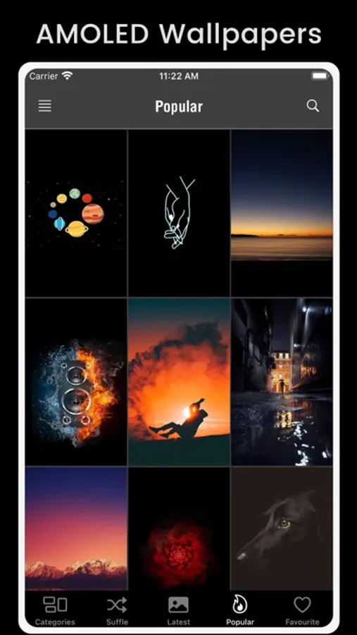 AMOLED Wallpapers app contains QHD premium quality wallpapers and dark material backgrounds for your iPhone or iPad.