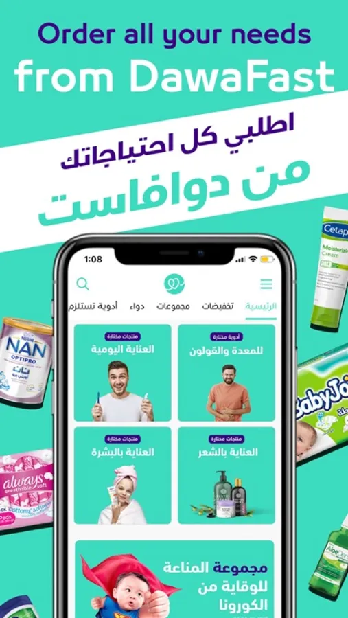 واقتني من العلامات التجارية المفضلة لديك بأسعار منافسة للصيدليات. تسوق المنتج، ضعه في السلة، أتمم الطلب، افتح بابك!