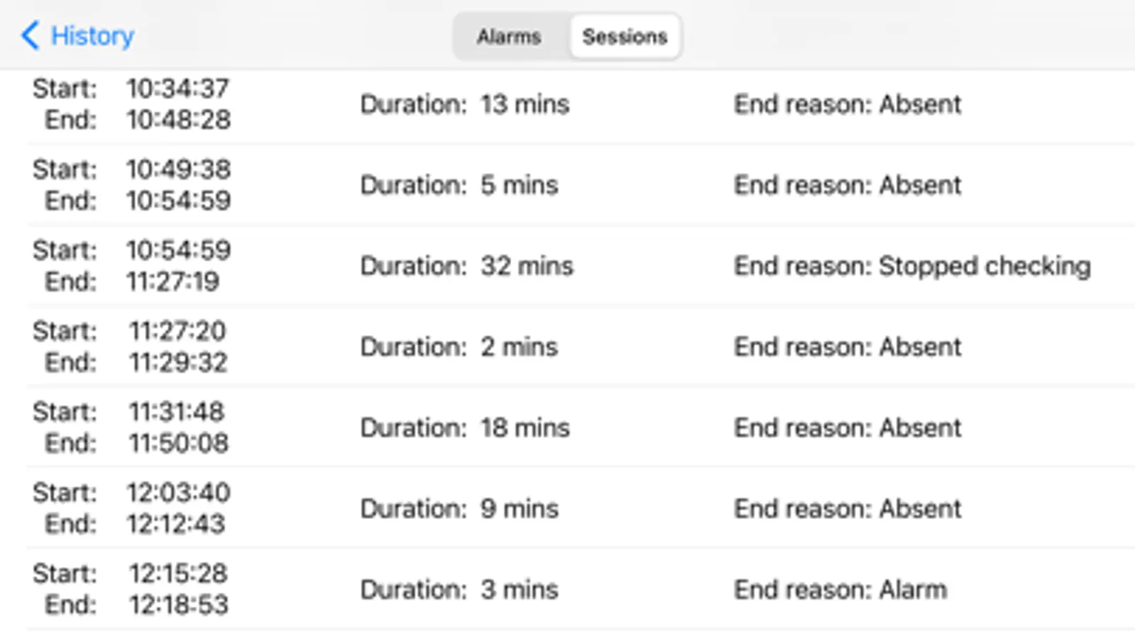 • Daily summary to show your performance: alarm counts and total monitor time.