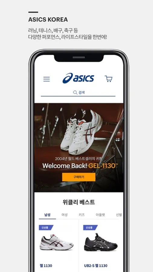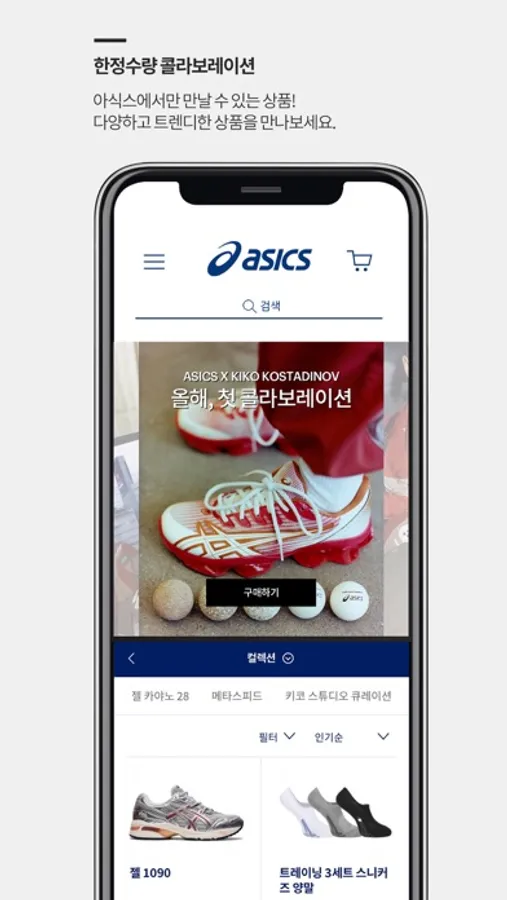 아식스 코리아 온라인스토어 앱 하나로 다양한 상품을 만나볼 수 있습니다.