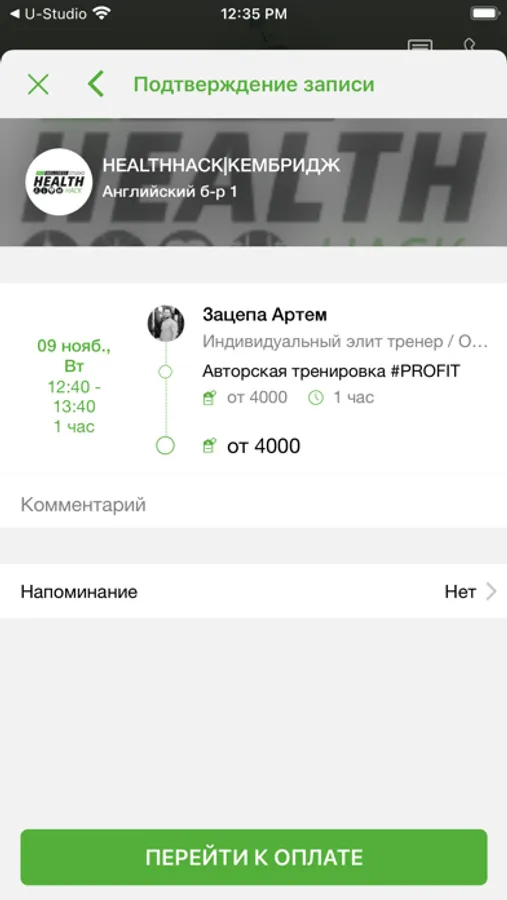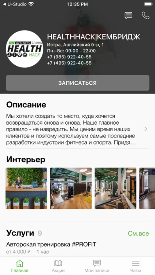 Официальное мобильное приложение фитнес студий HEALTHHACK