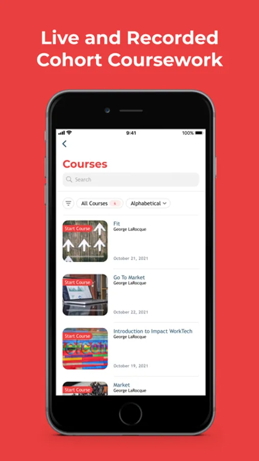 Get access to groups, courses, and all things Impact WorkTech Accelerator. This app is how our startup cohorts, mentors, and investors stay connected. You can connect and message each other, access all of the mentor sessions live or recorded, and most importantly learn with and from each other as you launch your product and gain product-market-fit.