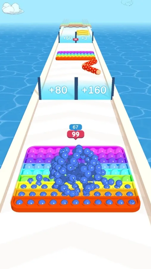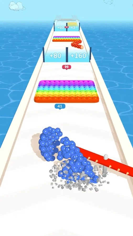 The game starts with one ball. Choose to go through a different number of doors, the small balls will increase and form a larger ball.