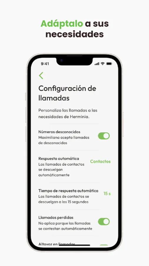 • Controlar cualquier ajuste del móvil Maximiliana, como el descuelgue automático o el bloqueo de números desconocidos.