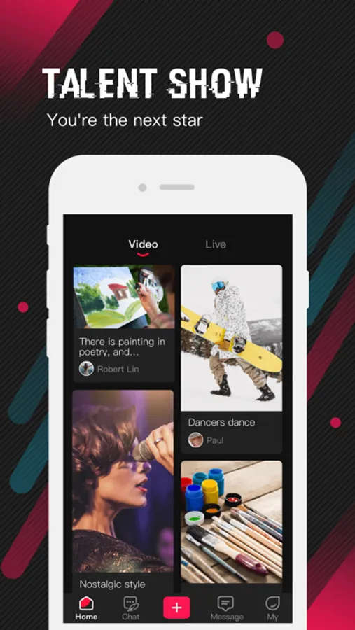 Publish short videos to share your happy moments; start live streaming and high with friends.