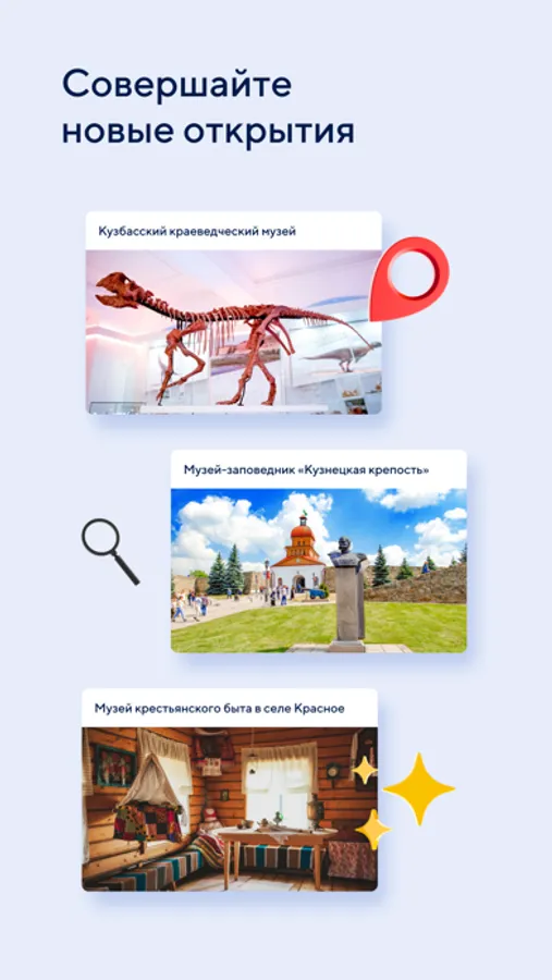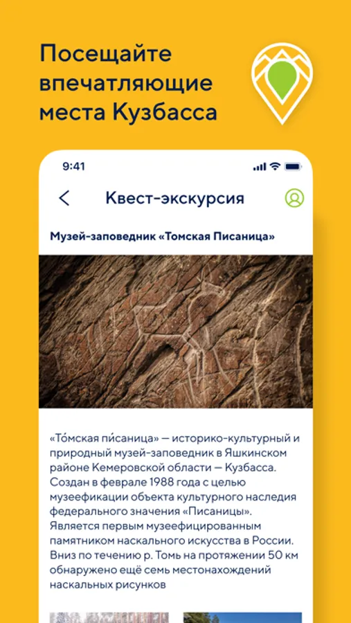 получи отметку о прохождении объекта показа в приложении. Когда все обязательные достопримечательности посещены, а викторины пройдены- получи значок «Юный турист Кузбасса».