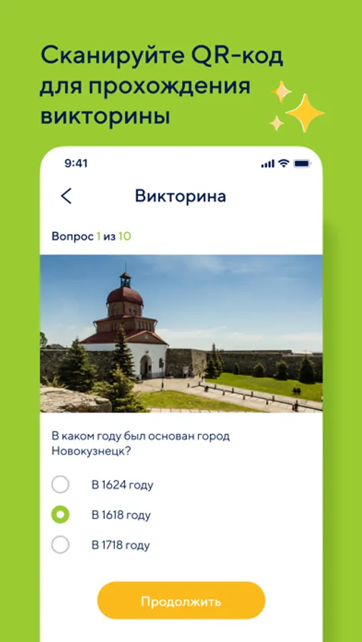 Вы можете получить отметку о посещении и проходить викторины, только находясь на месте туристического объекта. Вам необходимо посетить экскурсию на туристическом объекте, найти информационный стенд проекта, войти в приложение, отсканировать QR- код на информационном стенде и правильно ответить на все вопросы викторины и контрольный вопрос.