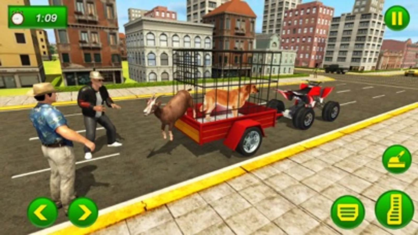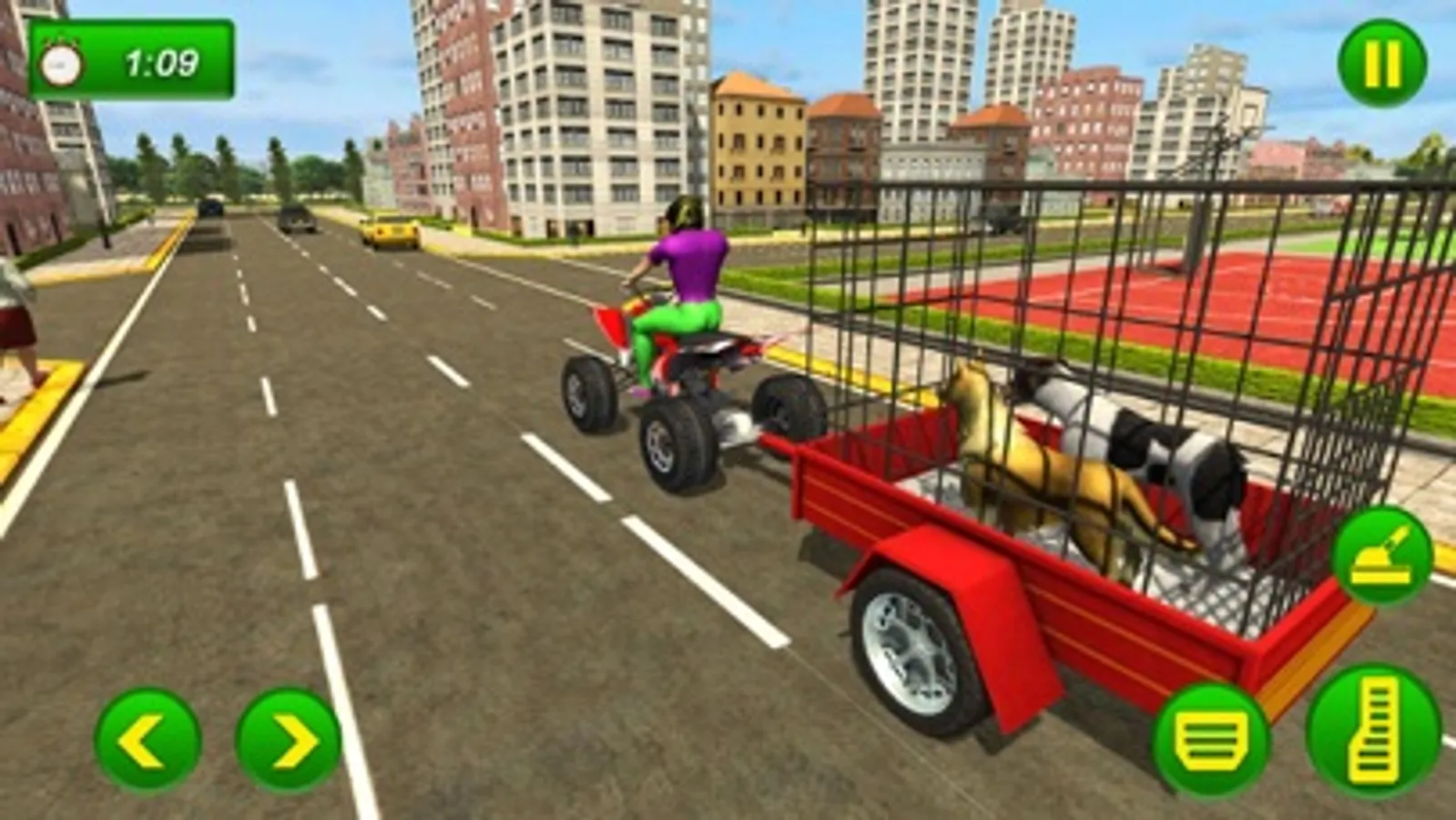 In this game you drive the pet transport van & ATV quad bike trolley or carriage cart to deliver the pet dogs in the city and offroad environment. There are different animals and pets like cute kittens, rabbits, goats & various dogs from pet shops to customers fastly and safely on time.