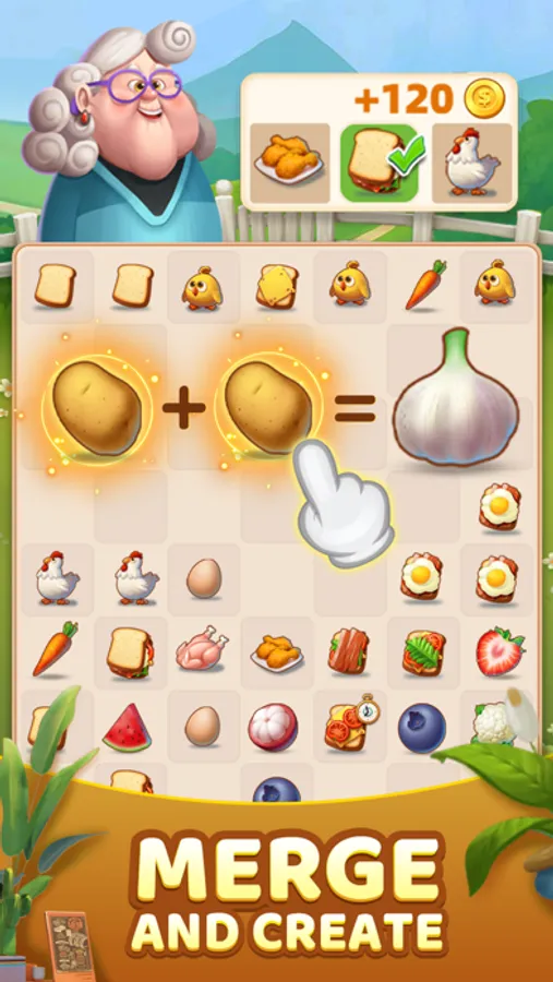 Chef Merge is a relaxing fun puzzle game in which you can decorate mansions and merge elements. Just like wandering on a farm, in this fun merge game, you can see vegetables & fruit, crops everywhere. Just tap, drag & merge them to create values!