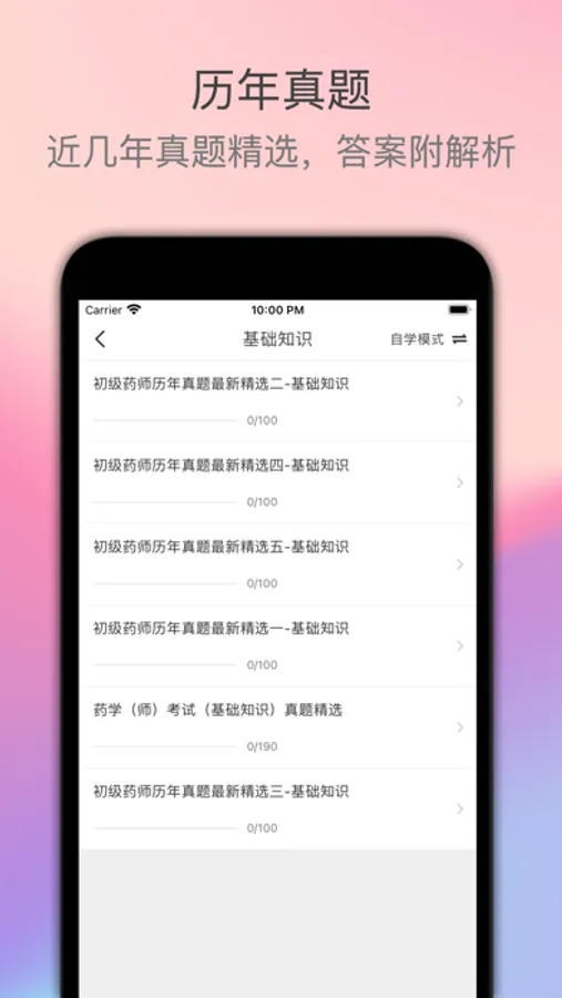 初级药师考试题库适用于全国卫生专业技术资格考试,药学(师)初级+中药学(师)考试,含最新试题,每道题付解析,随时随地学习练习,助您顺利通过初级药师考试。