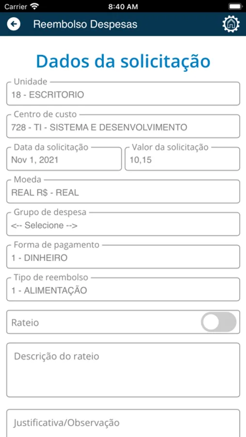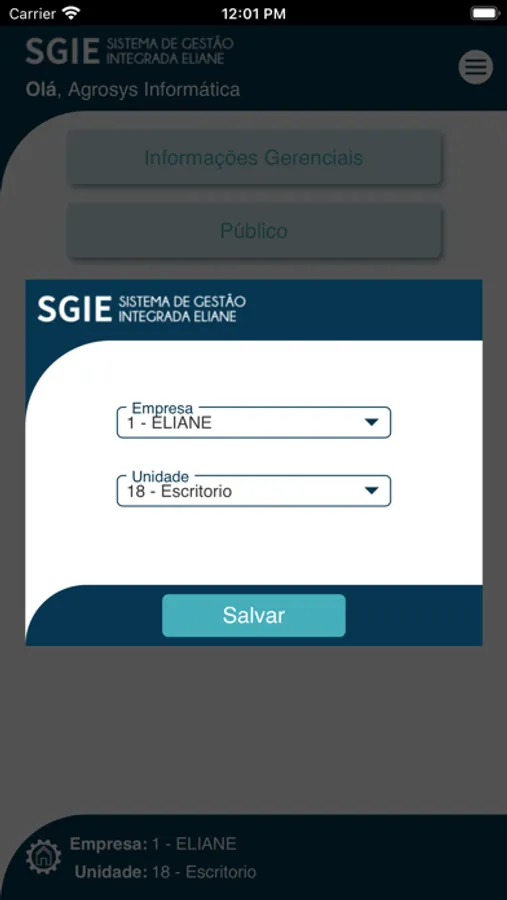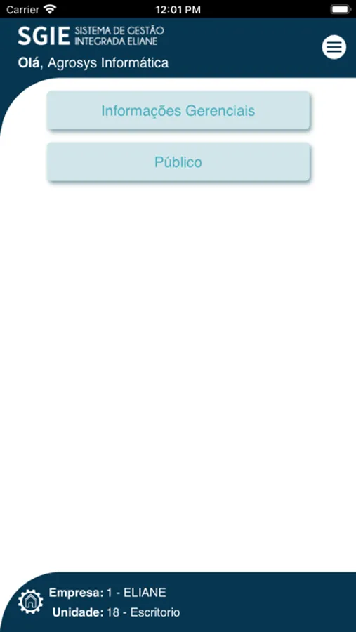 Aplicativo destinado ao uso corporativo por usuários do SGIE - Sistema de Gestão Integrada Eliane, sistema destinado ao controle de operações de grandes empresas.
