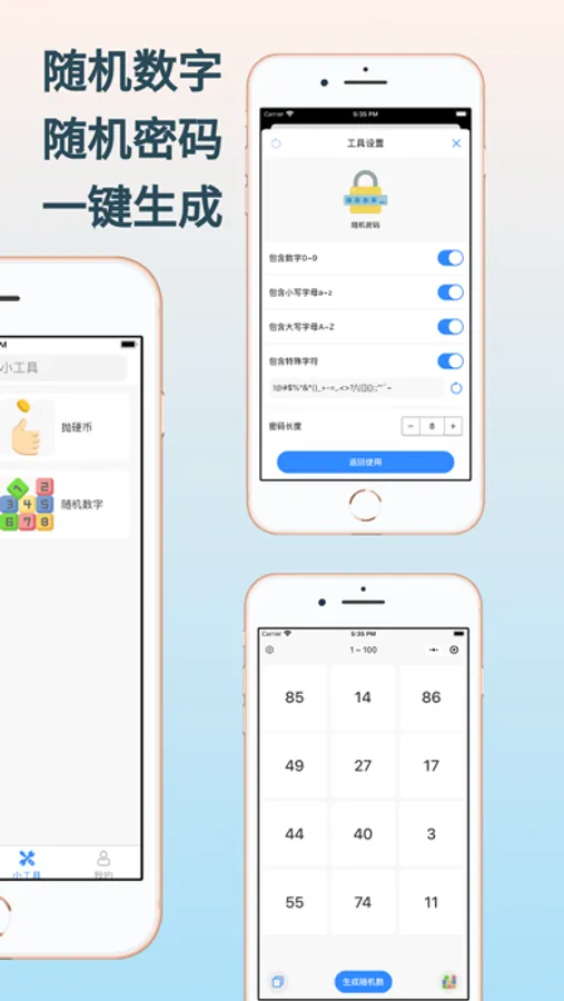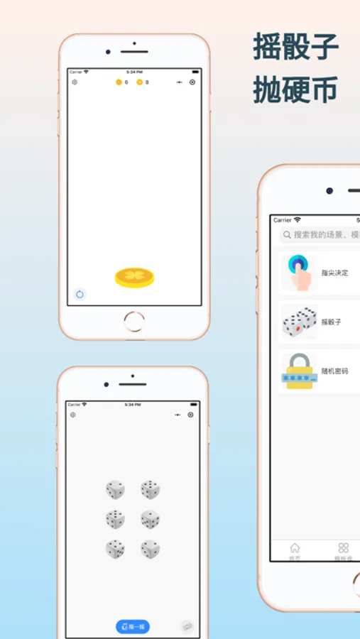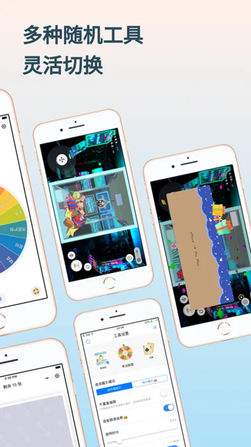 「随机世界」提供了娃娃机、幸运转盘、卡牌、答案之书、刮刮卡、指尖决定、硬币、骰子、随机数字、随机密码等多种工具来应对各种随机场景,你可以根据需求选择合适的工具,自定义场景。