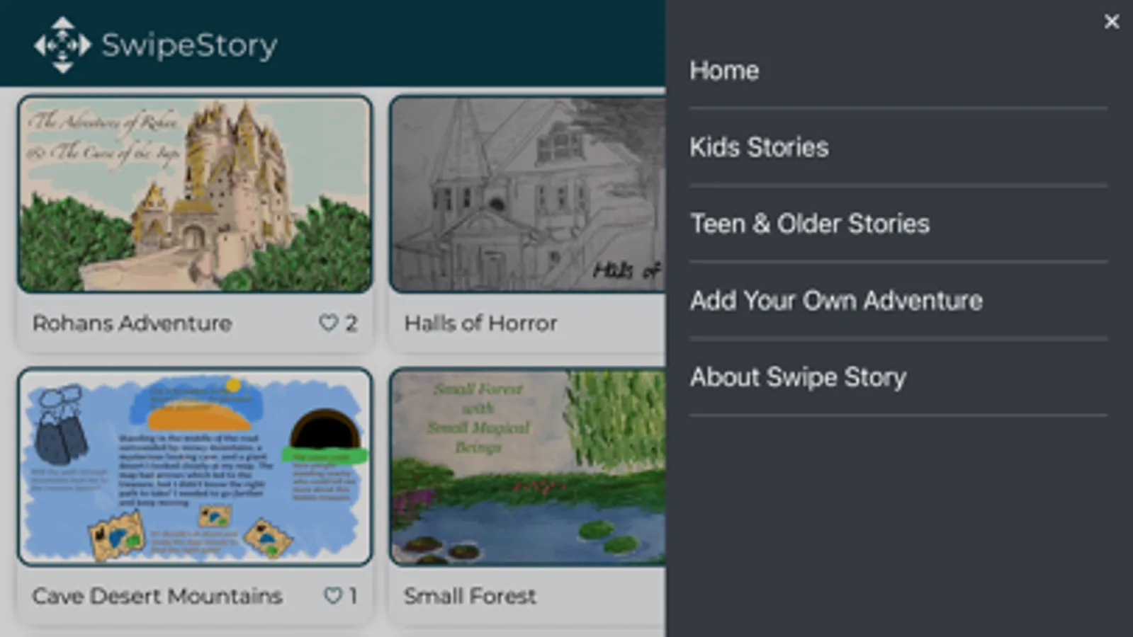 Or, create your own feature, by creating a story, and drawing the pages, check the link on “Add your adventure” to see what you need to do. Submit it to us, or host it on your own URL. Make it free or paid adventures. You are limited to your own creativity.